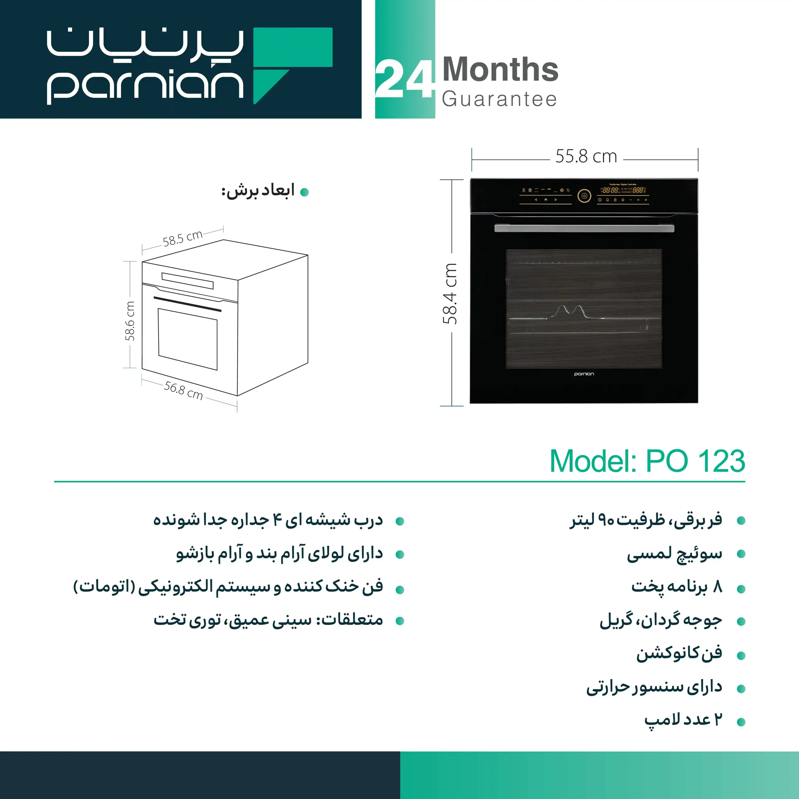 مدل PO 123 از سری فرهای توکار پرنیان محسوب می‌شود.
